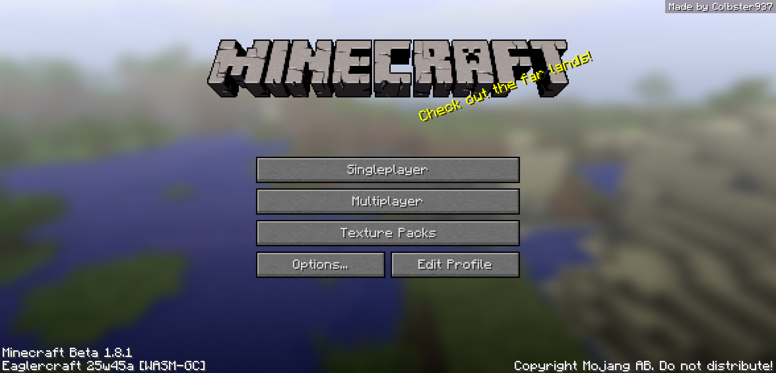 | This is a fully functional web port of Minecraft Beta 1.8.1, playable in any modern web browser. It currently supports only Singleplayer, with Multiplayer being worked on. |