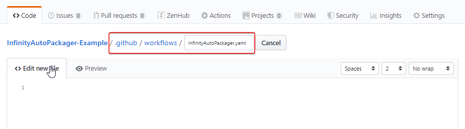 2. paste this into the filename `.github/workflows/InfinityAutoPackager.yaml`, do not miss the dot `.` at the beginning