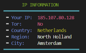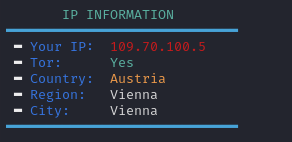 MyIP Tool is developed to check your IP information and to determine if you are connected to Tor. The tool displays IP, country, region, city, and Tor connection information.