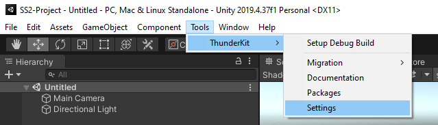 - Once the import configurations are created, go to Tools/Thunderkit/Settings