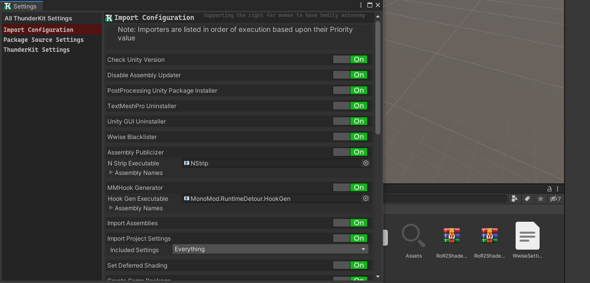 Assets/ThunderKitSettingsfolder and look for the "ImportConfiguration" file.- If there are no Configuration Executors, delete the ImportConfiguration so Thunderkit can regenerate it.