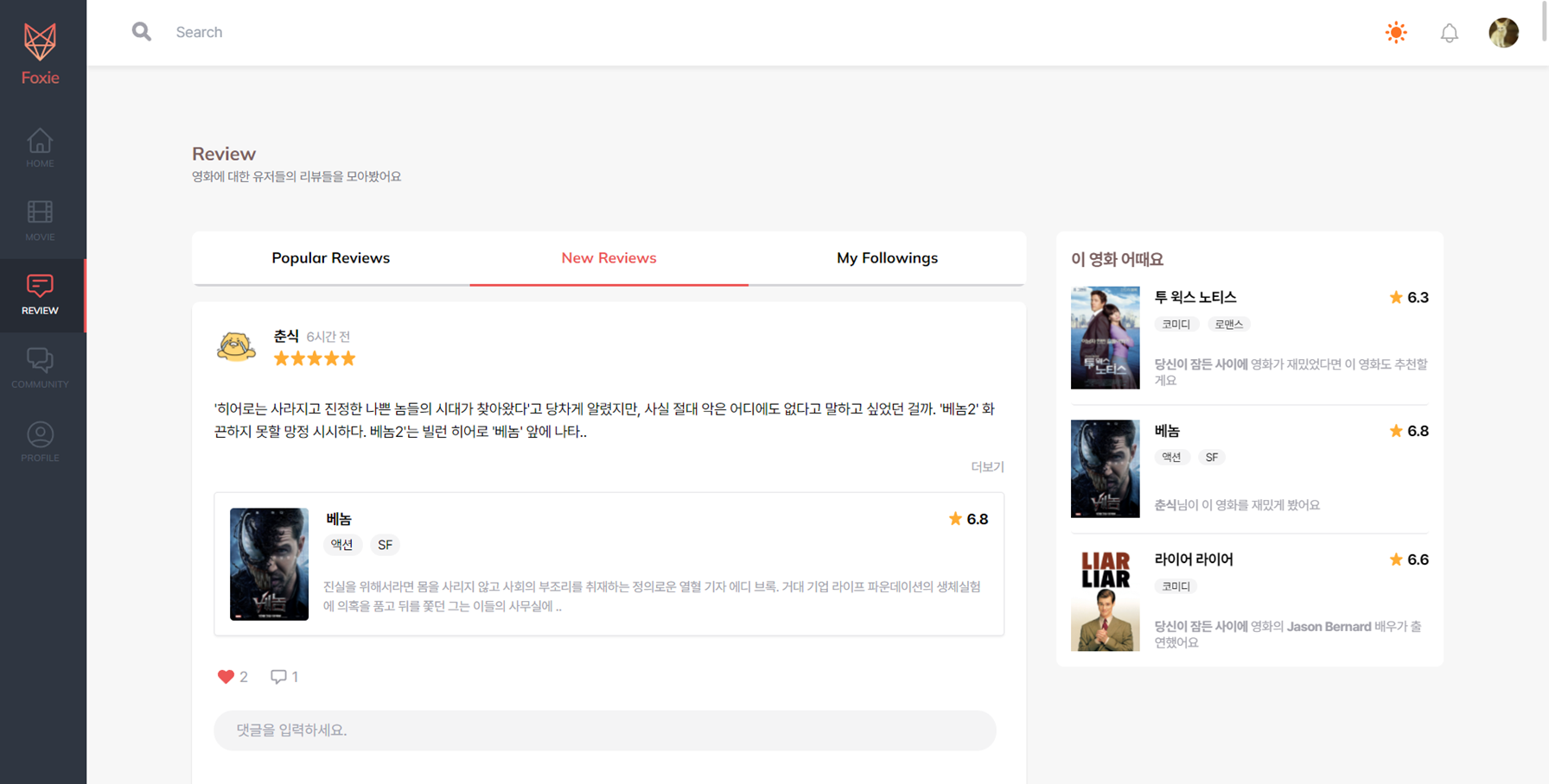 - 리뷰에 좋아요 및 댓글 기능