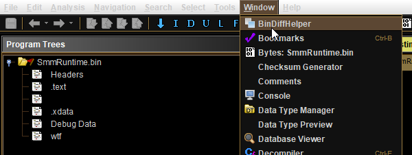- Some jdk. There might be certain restrictions depending on how your Ghidra was built and what other plugins you're using. I recommend using Temurin 21 LTS, as this currently seems to work with both BinExport and BinDiffHelper.